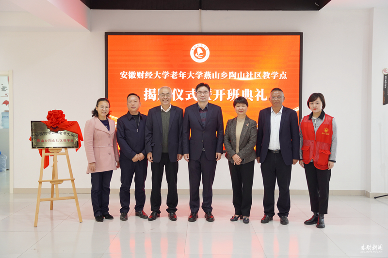 11月11日,安徽财经大学老年大学陶山社区教学点揭牌暨开班仪式在蚌山区燕山乡陶山社区举行。我校副校长、老年大学校长张焕明出席仪式,蚌山区政协主席石艳,我校继续教育学院院长、老年大学常务副校长王浩,我校新徽商研究中心主任王唤明,蚌山区燕山乡党委副书记、乡长汪祥政,蚌山区教育体育局副局长周昕,陶山社区党支部书记王晓莹,陶山社区教学点舞蹈班、手工班的社区居民学员参加活动。