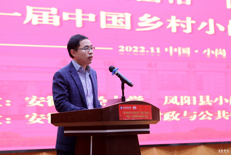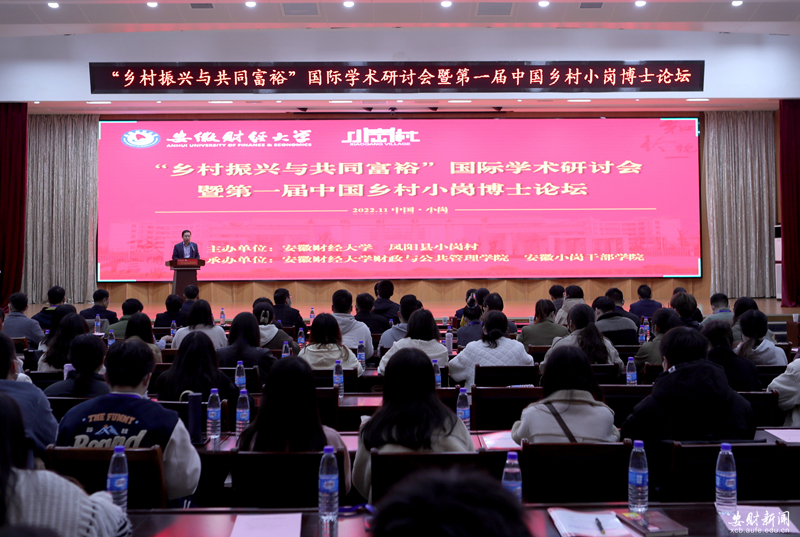 11月19日,由安徽财经大学、凤阳县小岗村联合主办的“乡村振兴与共同富裕”国际学术研讨会暨第一届中国乡村小岗博士论坛在安徽小岗干部学院举办。校党委书记虞宝桃,校党委副书记、常务副校长朱红军,安徽省农业农村厅党组成员、总农艺师程燚,《中国农村经济》《中国农村观察》创新工程总编辑、副社长兼编辑部主任潘劲,安徽小岗干部学院常务副院长李新龙,凤阳县委常委、小岗村第一书记李锦柱以线上线下相结合方式出席开幕式。学校有关职能部门、财政与公共管理学院负责人及师生代表参加开幕式。开幕式由朱红军主持。