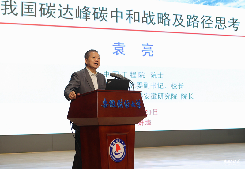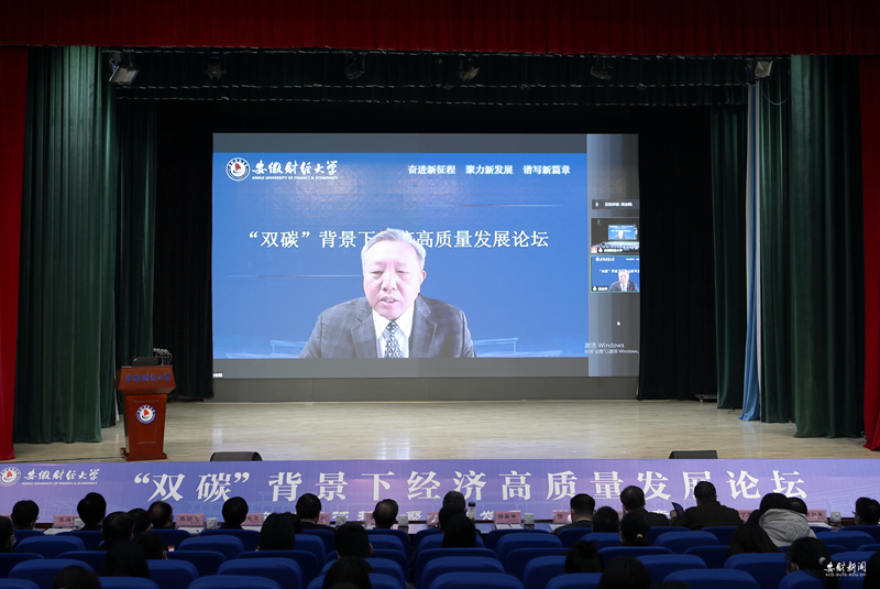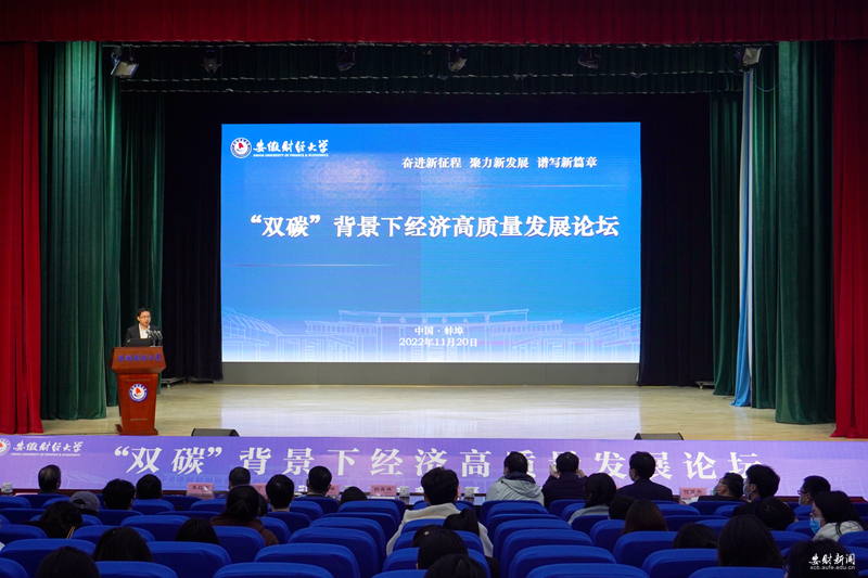11月20日,“双碳”背景下经济高质量发展论坛在我校龙湖东校区艺术楼报告厅隆重举行。蚌埠市委副书记、市长操龙灿,著名经济学家、中国人民大学原副校长、一级教授吴晓求,中国工程院院士、安徽理工大学校长袁亮,中国工程院院士、合肥工业大学教授杨善林,中国工程院院士、中国科学院合肥物质科学研究院研究员李建刚,中国工程院院士、中国建材集团有限公司总工程师、中建材玻璃新材料研究总院院长彭寿,安徽工业大学党委书记陆林,安徽工业大学党委副书记、校长魏先文,安徽科技学院党委书记蒋德勤,蚌埠学院党委书记陈国龙,安徽财经大学党委书记虞宝桃,安徽省政协经济委员会副主任、安徽财经大学原党委书记、校长丁忠明,安徽财经大学党委副书记、常务副校长朱红军, 安徽财经大学党委常委、副校长周加来,安徽财经大学副校长张焕明、学术副校长何贤杰出席开幕式。朱红军主持开幕式。