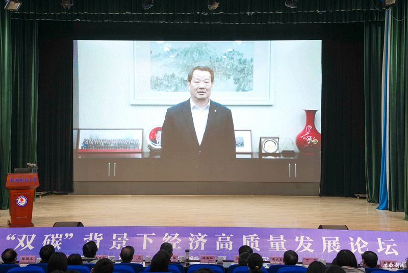 操龙灿在致辞中指出,实现碳达峰碳中和是贯彻新发展理念、构建新发展格局、推动高质量发展的内在要求,是一场广泛而深刻的经济社会系统性变革。党的二十大报告指出,要积极稳妥推动碳达峰碳中和,做到系统全面部署。近年来,蚌埠市委、市政府深入贯彻落实习近平总书记关于碳达峰碳中和的重要指示精神,全面理解、准确把握实现碳达峰碳中和的内涵发展、目标建设、实施路径及重点任务等各个维度,取得显著成效。未来蚌埠市将进一步推动产业结构、能源结构和相关技术的深刻变革,推动地方经济社会高质量发展。操龙灿指出,安徽财经大学扎根蚌埠61年来,将学校发展与地方发展紧密结合,为蚌埠经济社会发展作出重要贡献。本次活动围绕推动绿色低碳经济发展、探索“双碳”背景下经济高质量发展新路径、进一步提升经济发展新动能等主题开展高层次交流研讨,对完整准确全面领会贯彻落实党的二十大精神具有重要意义,对推动地方、企业、高校之间的交流合作具有重要作用。