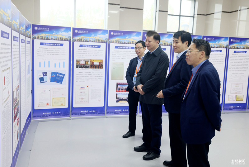 宣讲前,黄晓武参观了学校“建设特色高水平大学 服务安徽高质量发展”成果展。