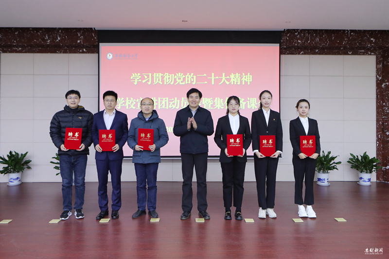 虞宝桃在讲话中指出,党的二十大是在全党全国各族人民迈上全面建设社会主义现代化国家新征程、向第二个百年奋斗目标进军的关键时刻召开的一次十分重要的大会,是一次高举旗帜、凝聚力量、团结奋进的大会。学习宣传贯彻党的二十大精神是当前和今后一个时期内学校首要政治任务。学校党委决定成立学习宣传贯彻党的二十大精神宣讲团,集中开展理论宣讲,引导全校师生深刻领悟“两个确立”的决定性意义,增强“四个意识”、坚定“四个自信”、做到“两个维护”,自觉把思想和行动统一到党的二十大精神上来。虞宝桃要求,学校各级党组织要切实提高政治站位,充分认识开展集中宣讲的重大政治意义、理论意义和实践意义;学校相关职能部门要制定详细宣讲方案,精心组织谋划、科学安排部署;宣讲团成员要坚持“诚信博学”,在真学真懂上下功夫。用忠诚之心先学一步,全面学习全面把握,深入理解内涵。要坚持“知行统一”,在真信真用上下功夫。坚持学以致用、学用结合。将贯彻落实党的教育方针、坚持立德树人根本任务、学习宣传贯彻党的二十大精神和学校实际情况结合起来,自觉用党的二十大精神指导实践、推动工作,努力办好新时代人民满意的大学。