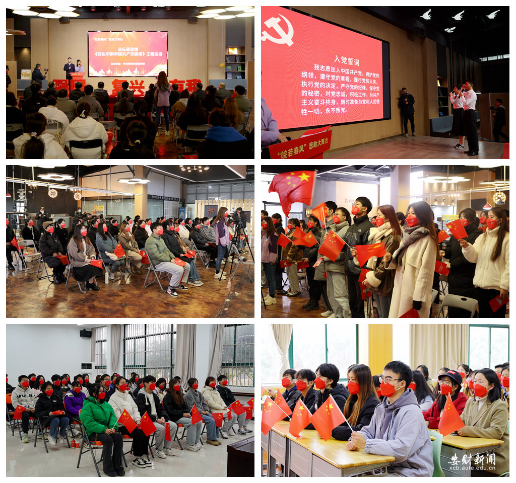 随着《建党伟业》电影经典片段播放以及《国际歌》响起,《音乐中的中国共产党精神》安徽财经大学专场思政课拉开帷幕。本场主题音乐思政课分为伟大建党精神、伟大长征精神、延安精神、抗美援朝精神、红旗渠精神、改革开放精神、脱贫攻坚精神七个篇章。精心选取《追寻》《七律•长征》《保卫黄河》等经典时代歌曲,生动讲述红色故事、赓续红色血脉,集中展现中国共产党的精神谱系。 “蚌埠市十佳思政课”“蚌埠市十佳思政名师”李震婷、陈晓妹分别为现场师生上微思政课。