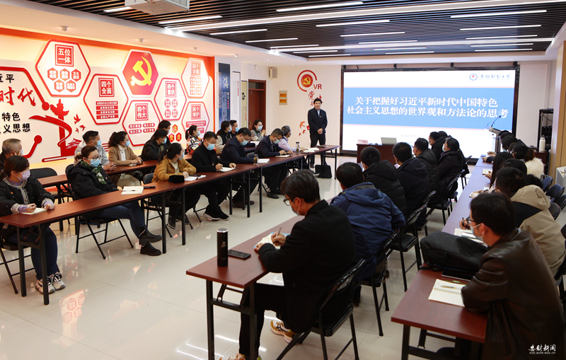 虞宝桃宣讲主题为《关于把握好习近平新时代中国特色社会主义思想的世界观和方法论的思考》。他重点解读了“六个必须坚持”对高等教育发展的现实指导意义。他指出,坚持人民至上就是要坚持高等教育为人民服务,办好人民满意的高等教育。要坚持以人为本,落实好立德树人的根本任务,关注关心关爱学生,促进学生成长成才,培养德智体美劳全面发展的社会主义建设者和接班人;坚持自信自立就是要全面贯彻好党的教育方针,坚持社会主义办学方向,落实“四个服务”。要坚持扎根中国大地办世界一流大学,构建中国自主的知识体系,全面提高人才自主培养质量;坚持守正创新就是要尊重高等教育发展规律,尊重人才成长规律和科研活动自身规律,保持高校应有的战略定力和大学精神。要在人才培养和科技创新方面主动作为,不断优化学科专业结构,创新人才培养理念和模式,更好适应经济社会发展需要,在服务国家和地方战略中提升办学水平;坚持问题导向就是要按照目光所至看到问题、耳听范围想到问题的要求,深入找准制约学校高质量发展的突出矛盾困难和问题,找准短板弱项。要按照所思所想直面问题、所作所为解决问题的要求,发扬斗争精神,勇于担当作为,敢于啃硬骨头,攻坚克难解决问题;坚持系统观念就是要走出象牙塔置身社会大系统中,在与国家发展和民族振兴同频共振、同向同行中实现自身的价值追求。要统筹党的建设与业务发展,统筹发展、规模、质量、结构和效益,统筹教学、科研、管理和服务,促进学校事业特色发展、高质量发展;坚持胸怀天下就是要发挥大学传播真理的优势,大力弘扬“和平、发展、公平、正义、民主、自由”的全人类共同价值观,以胸怀天下的情怀,为世界和平发展和全人类自由幸福不断奉献高校智慧和力量,推动构建人类命运共同体。要秉持大学国际化的属性,促进师生参与国际合作与学术交流,拓宽师生的国际视野,提升师生了解世界学术前沿的能力,在国际合作与交流中讲好中国故事、传播中国声音,塑造可信、可爱、可敬的中国形象。虞宝桃希望各基层党组织和广大党员教师要围绕深入学习贯彻党的二十大精神这条主线,聚焦“六个必须坚持”,坚持不懈用习近平新时代中国特色社会主义思想凝心铸魂,坚持学思用贯通、知信行统一,注重理论联系实际,把理论学习与推动工作结合起来,把党的二十大精神转化为加快建设具有鲜明财经特色的多科性高水平大学建设的能量和动力。