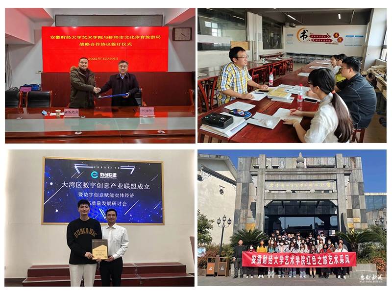 深入挖掘大禹文化品牌价值内涵,以教师科研为抓手,将社会服务贯穿课程思政教学科研实践全过程,鼓励教师挖掘校内外教育资源和实践项目,把学术研究和实践经验带入课堂,先后编撰出版《大禹文化创造性转化的理论与实践》等学术著作,刊发《中国古代哲学与治水实践的关系探讨》《场景化视域下蚌埠涂山大禹文化艺术传播研究》等学术论文,社情民意稿件《关于将大禹文化确立为安徽文化品牌的建议》获省领导批示……学院聚焦地方特色文化品牌,长抓科研工作提质增效,充分调动广大师生参与科学研究、建言献策积极性,充分展示艺术学院良好形象,为地方经济社会发展提供智力支持。
