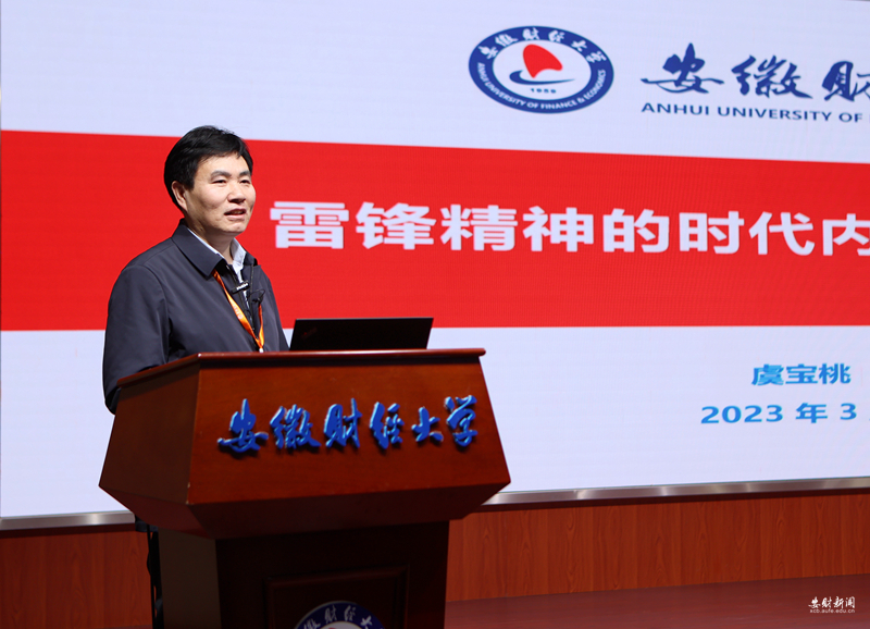 “雷锋精神熔铸于党领导人民推进实现中华民族伟大复兴的奋斗史中,随着时代变迁而不断与时俱进、创新发展。”虞宝桃从历史维度、理论维度、现实维度和价值维度四重维度深刻阐述了雷锋精神的时代内涵意蕴、拓展的逻辑理路和弘扬与践行路径。他讲到,雷锋精神在内涵拓展中始终以马克思主义为根本遵循,以中华优秀传统文化为肥沃土壤,以中国革命精神为血脉根基,这是其经久不衰的理论基础。60年来,雷锋精神在内涵拓展中始终坚持道德建设先进性与广泛性的辩证统一,坚持实践探索与理论创新互促共进。他强调,雷锋精神是推进实现中华民族伟大复兴的永恒精神力量。他鼓励有志青年立足新时代,让学雷锋活动融入日常、化作经常,在学习上发扬刻苦钻研的“钉子”精神,工作上发扬忠于职守的敬业精神,生活上发扬艰苦奋斗的创业精神,理想信念上发扬匹夫有责的爱国精神,价值取向上发扬大爱无疆的奉献精神,人际关系上发扬助人为乐的合作精神。
