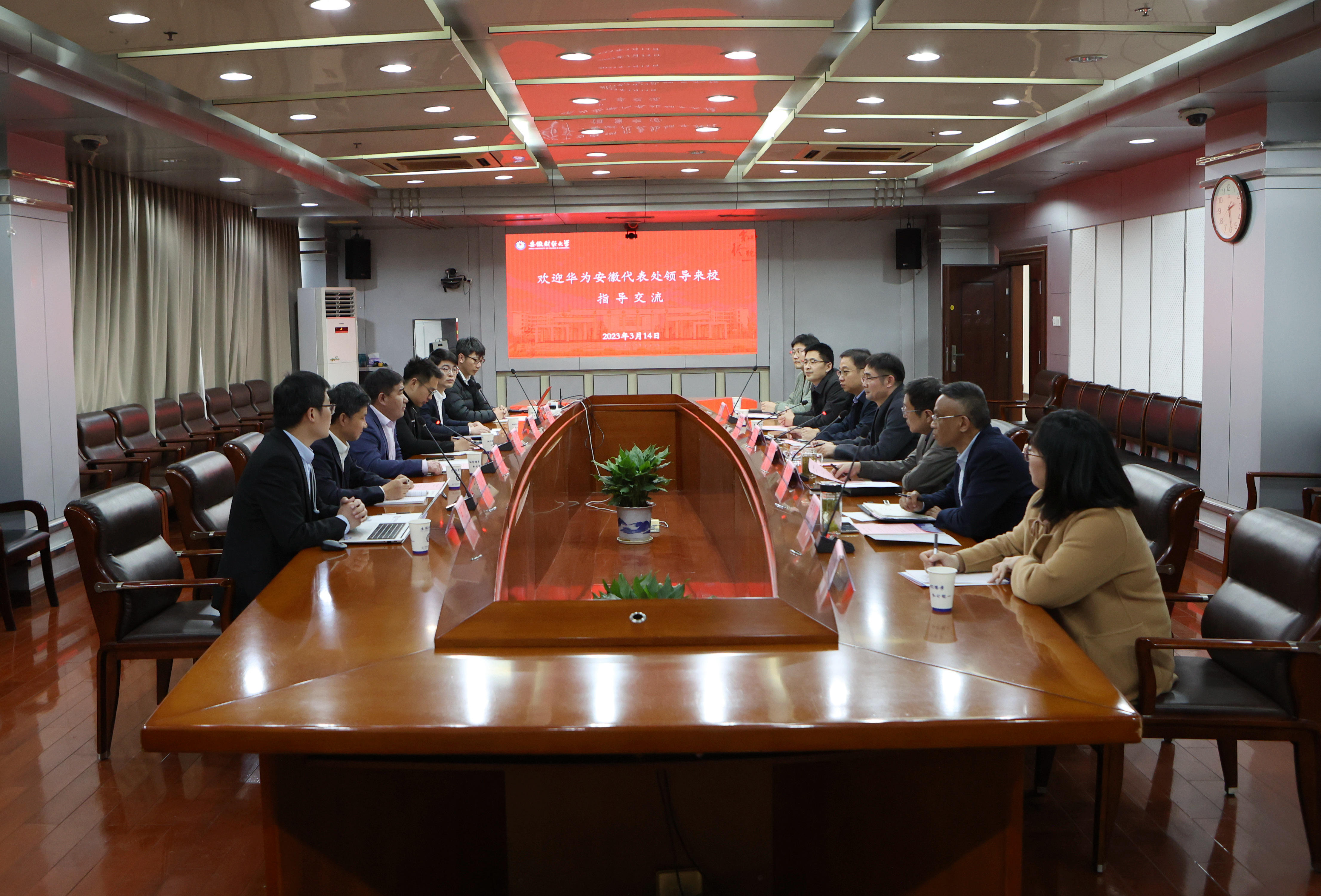 3月14日下午,华为技术有限公司一行来校就校企合作事宜进行交流。副校长张焕明出席座谈会。华为技术有限公司皖东北业务总经理郁善彬、政企蚌埠城市总经理张熙、政企业务市场总监杨光,我校社会合作处负责人、数字经济产业园管理运营团队代表及相关学院人员参加座谈会。会议由社会合作处处长顾思伟主持。