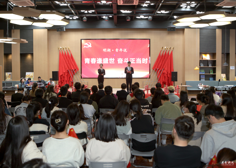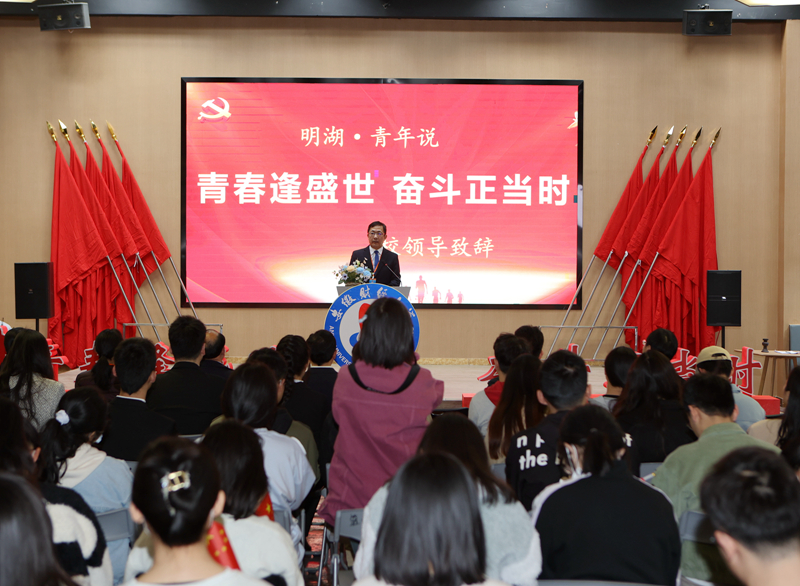 微风吹过同一片龙子湖,时代在变,年轻的面孔也在变。4分钟的暖场视频通过两个不同时代的青年人跨越百年时空的“青春对话”,正式拉开了安徽财经大学第四届“明湖·青年说”活动帷幕。