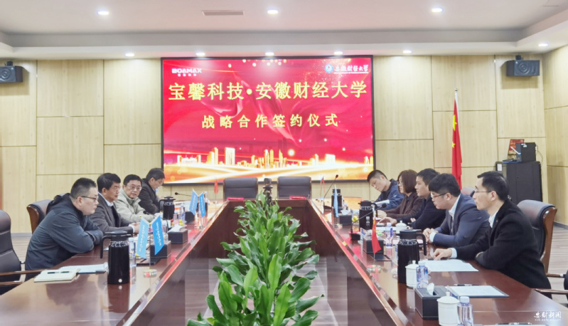 杨烨介绍了学校整体办学情况和安徽财经大学数字经济产业园建设情况。他表示,学校与宝馨科技签署战略合作协议是校企双方共谋发展、产教融合、同享共赢的应时之举,期待双方能尽快推进合作项目落地生根、结出硕果,携手为高等教育人才培养、科技创新、产业升级、经济社会发展贡献校企力量。杨烨希望双方能够勠力同心谋合作,雷厉风行早行动,真抓实干求实效,锲而不舍抓落实。