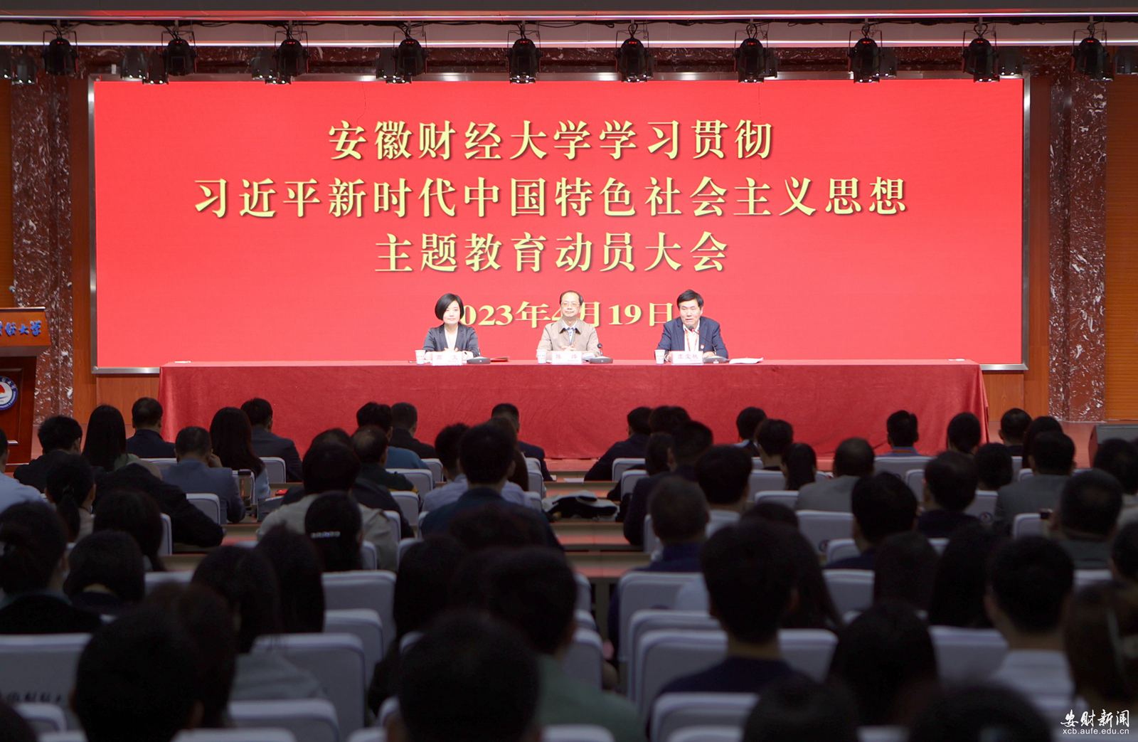 虞宝桃在动员讲话中指出,在全党深入开展学习贯彻习近平新时代中国特色社会主义思想主题教育,是党中央为全面贯彻党的二十大精神、动员全党同志为完成党的中心任务而团结奋斗所作的重大部署,是深入推进新时代党的建设新的伟大工程的重大部署,正当其时、意义重大。学校党委将坚决贯彻落实党中央决策部署和省委统一安排,从衷心拥护“两个确立”、忠诚践行“两个维护”高度,深刻领会开展主题教育的重大现实意义和深远历史意义,切实把思想和行动统一到习近平总书记的重要讲话精神上来,统一到党中央决策部署上来,进一步强化思想自觉、政治自觉、行动自觉,确保主题教育落地落实落细,取得实实在在的成效。虞宝桃要求,全校各级党组织和广大党员、干部要切实提高政治站位,深刻领会主题教育重大意义,牢牢把握“学思想、强党性、重实践、建新功”的总要求,坚持从严从实,强化组织领导,注重宣传引导,抓好督促指导,有力有序推进重点措施,确保主题教育落地见效。他指出,要在强化理论学习上“下苦功”。坚持读好原著、学透原文、悟好原理,突出抓好“六学”,围绕美好安徽建设和学校“十四五”发展规划学思践悟,在深学细照笃行中提高理论素养、坚定理想信念、升华觉悟境界、增强能力本领;要在深入调查研究上“扑下身”。始终聚焦学校高质量发展,系统开展调查研究,找准问题、用对方法、统筹优化,不断提升党员干部队伍能力本领,确保减负增效、解决问题;要在推动高质量发展上“见实效”。始终聚焦构建“一体两翼”新发展格局、推深做实“两大重点战略”,切实把主题教育转化为全校上下担使命作贡献、破难题促发展、办实事解民忧的强大动力;要在抓好检视整改上“动真格”。发扬刀刃向内的自我革命精神,开展党性分析,抓好整治整改,坚持边学习边对照、边检视边整改,有序推进干部队伍教育整顿,做好“后半篇文章”。通过主题教育,让听党话、跟党走的信念成为安财师生的自觉追求,把党的宝贵精神财富转化为办学治校的磅礴伟力,以高质量的主题教育推动学校事业内涵式高质量发展,为全面建设社会主义现代化国家和现代化美好安徽贡献安财智慧和力量。