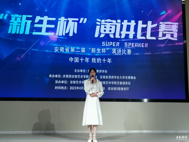 4月28日,由安徽省演讲学会主办,共青团安徽艺术学院委员会、安徽省演讲学会大学生理事会联合承办的安徽省第二届“新生杯”演讲比赛决赛在安徽艺术学院举行。我校文学院贾珂玮同学(指导老师陈静宇、徐少华)荣获一等奖。这是文学院继曹昕宇同学在2022年首届安徽省“新生杯”演讲比赛中获得一等奖后,第二次获此殊荣。