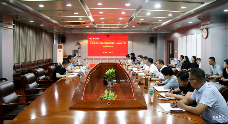 武刚作动员部署讲话。他指出,开展纪检监察干部队伍教育整顿,是习近平总书记亲自点题、亲自部署的重大政治工作,全校纪检监察干部要提高政治站位,深刻认识纪检监察干部队伍教育整顿的重大意义,要从坚定拥护“两个确立”、坚决做到“两个维护”的高度,深刻认识开展纪检监察干部队伍教育整顿的极端重要性和现实紧迫性;要强化思想认识,发扬彻底的自我革命精神,以强化党性修养为切入点,以检视整治为契机,自觉接受刻骨铭心的革命性锻造和深入灵魂的精神洗礼,以高度的政治自觉、思想自觉和行动自觉落实好检视整治的各项任务;要坚持严实标准,主动解开心结,打消思想顾虑,勇于自我剖析,坚持刀刃向己,主动把自己摆进去,全面检视问题,以问题的整改为突破点,边查边改、真查真改,补短板、强弱项,以做好个人自查工作推动检视整治的常态化、长效化,推动教育整顿实实在在取得成效。