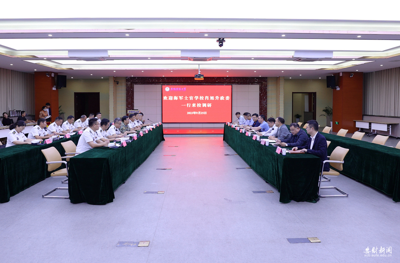 9月25日下午,中国人民解放军海军士官学校肖旭升政委一行来我校座谈交流。校党委副书记、校长朱红军,副校长张焕明出席座谈会。学校党政办公室、教务处、发展规划处、学生处、研究生院、图书与信息中心、后勤管理服务中心负责人参加座谈。座谈会由张焕明主持。