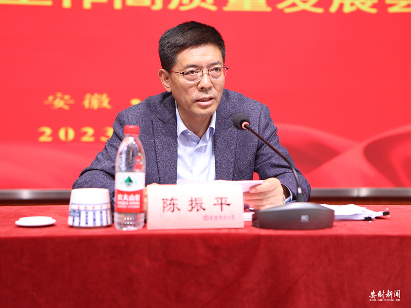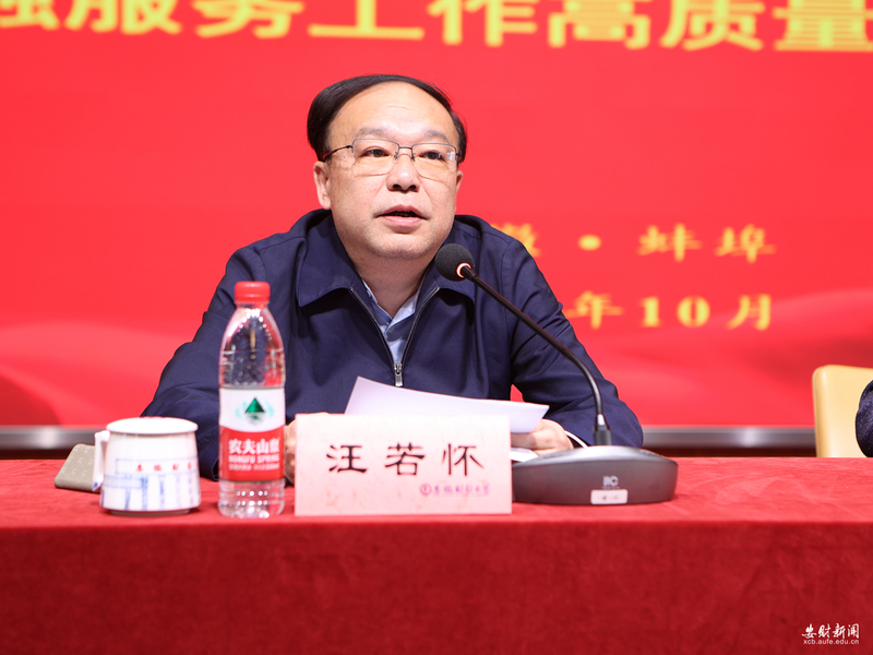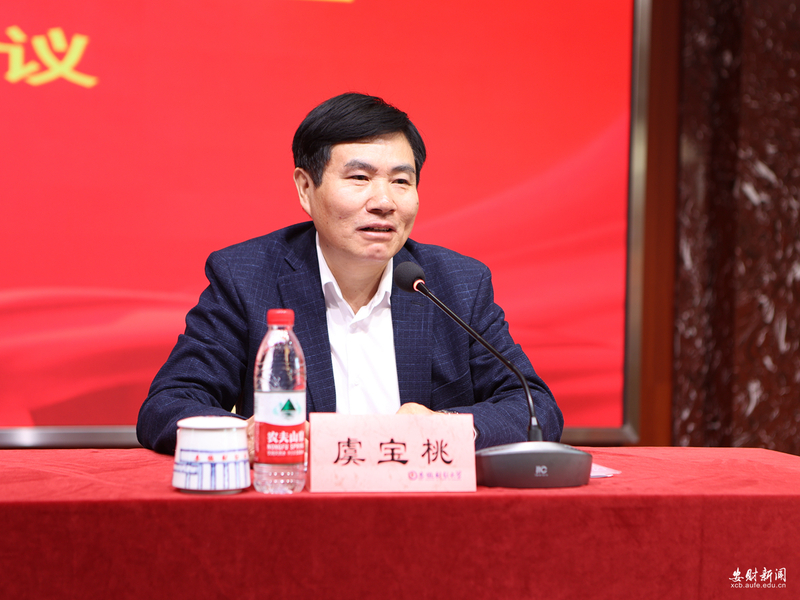 虞宝桃在致辞中指出,中华全国供销合作总社与我校历史渊源深厚、联系合作密切,总社在学校学科建设、人才培养和合作经济制度建设等方面给予了大力支持,奠定了学校扎实的办学基础。他表示,合作经济是我校办学特色、研究传统和文化积淀的重要体现,安徽财经大学中国合作社研究院是总社重点智库,是总社合作经济研究与培训基地。近年来,学校连续出版《中国供销合作经济发展研究报告》《中国合作经济发展研究报告》《中国棉花产业发展研究报告》等系列研究报告,承担几十项国家级、省部级相关科研课题。学校今后将进一步拓宽理论研究深度,突出学习成果转化,积极投身供销合作社领域金融服务的理念创新、实践探索,为供销合作社和地方经济社会高质量发展贡献安财力量。