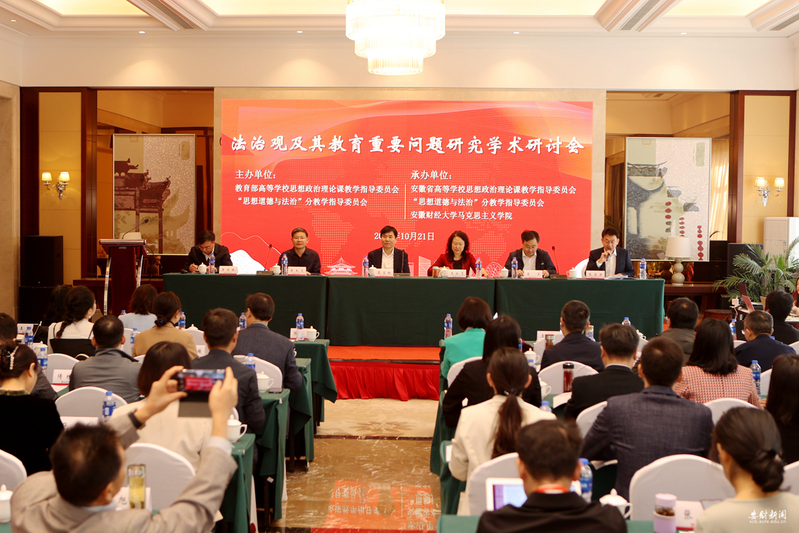 10月21日至22日,由教育部高等学校思想政治理论课教学指导委员会“思想道德与法治”分教学指导委员会主办,安徽省高等学校思想政治理论课教学指导委员会“思想道德与法治”分教学指导委员会、安徽财经大学马克思主义学院承办的“法治观及其教育重要问题研究”学术研讨会在我校召开。教育部高等学校科学研究发展中心思想政治理论课建设研究处副处长房正,安徽省教育厅思想政治工作处处长王后林,教育部“思想道德与法治”分教指委副主任委员陈大文,教育部“思想道德与法治”分教指委委员王淑芹,我校党委书记虞宝桃出席会议。来自全国40所高校的70余位专家学者和相关期刊编辑参加研讨会。开幕式由校党委副书记张亚新主持。