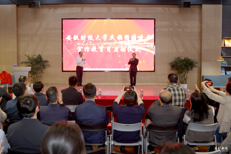 启动仪式上,党委统战部通报了学校民族团结进步宣传教育工作总体安排情况,教务处副处长廖信林、体育教学部主任姜同仁共同为安徽财经大学少数民族传统体育运动俱乐部揭牌。体育教学部高智老师现场推介了部分少数民族传统体育项目,来自全校的各族学生代表还为大家表演了精彩的朗诵、舞蹈和合唱节目。