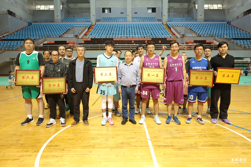10月28日下午,由校工会主办、校篮球协会承办的2023年教工男子篮球赛在龙湖东校区体育馆落下帷幕。本次比赛共有19支队伍参赛,经过激烈角逐,体育教学部获得第一名,后勤管理服务中心、财政与公共管理学院、统计与应用数学学院、机关二分会、机关一分会分获二至六名。校党委常委、副校长储德银到现场观看比赛并为获奖球队颁奖。