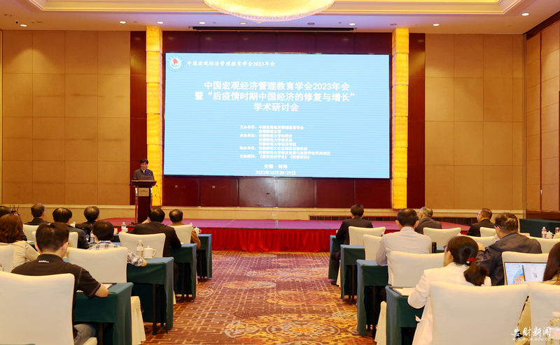 10月27日至29日,由中国宏观经济管理教育学会、安徽财经大学共同主办的中国宏观经济管理教育学会2023年会暨“后疫情时期中国经济的修复与增长”学术研讨会在我校举办。校党委副书记张亚新教授,中国宏观经济管理教育学会会长、中国人民大学刘瑞教授,中国宏观经济管理教育学会秘书长、上海对外经贸大学陈宏教授出席会议,来自中国人民大学、四川大学、中央财经大学、安徽大学等国内外近30所高校和研究机构的专家学者参加了研讨会。开幕式由我校经济学院院长李刚教授主持。