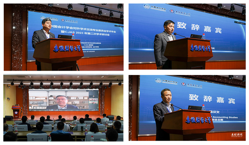 何贤杰在开幕式致辞中简要介绍了学校基本情况、办学特色以及近年来取得的成绩。他表示,多年来,中国会计学会对外学术交流专业委员会致力于整合中国乃至世界会计学术资源,China Journal of Accounting Studies学术研讨会在众多资深专家和青年学者的共同努力下,已经具有较强的学术影响力,承办此次会议,是学校开展有组织科研的重要举措。何贤杰希望以此次会议为契机,大力提升师生科研水平,努力推动学校会计学科建设发展。刘国强在致辞中表示,要以中国式现代化为背景,突出中国特色,讲好中国故事,彰显中国贡献,把论文写在祖国大地上,引领会计研究与发展的潮流。张新民表示,CJAS期刊持续不断向国际学术界推出中国会计界最新的理论成果,年轻学者们要有基于中国实践的现实支撑,共同努力将CJAS期刊打造成国际品牌期刊。陈汉文详细讲述了CJAS期刊接受投稿论文的要求、审稿流程和审稿周期,并重点强调了当前会计、审计研究的特点。
