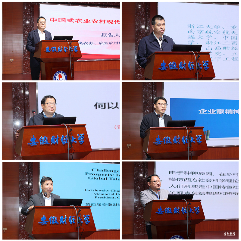 开幕式后,大会围绕研讨会主题举行了两场主旨报告。第一场主旨报告由中国农业大学经济管理学院院长司伟主持。中央农办、农业农村部专家咨询委员会委员刘奇、中华全国供销合作总社合作指导部副部长王劲、中国人民大学中国合作社研究院院长孔祥智、加拿大纽芬兰纪念大学讲席教授方涛、美国新泽西州立大学研究员Robert Beyster分别作了题为“中国式农业农村现代化背景下的合作经济”“供销合作社在建设共富中国中的理论逻辑和实践逻辑”“农民合作社高质量发展”“挑战、机遇、与未来展望:新时期国际合作战略与全球人才管理“的主旨报告。第二场主旨报告由中国合作经济学会副会长、秘书长刘洪林主持。国务院发展研究中心研究员江宇,蚌埠市政协副主席陈忠卫,英国埃克塞特大学系主任劳拉·哥伦布,安徽财经大学副研究员董晓波分别作了题为“发展集体经济需要正确的经济学方法论”“合作社何以能引领农业高质量发展?”“后增长时代的农业合作社规模化研究”“企业家精神对农民合作质量提升的影响研究”的主旨报告。分论坛分别围绕“合作经济与产业发展”“数字经济与农村发展”“合作经济与农户发展”3个主题进行了专题讨论。大会还设立了1个研究生论坛。