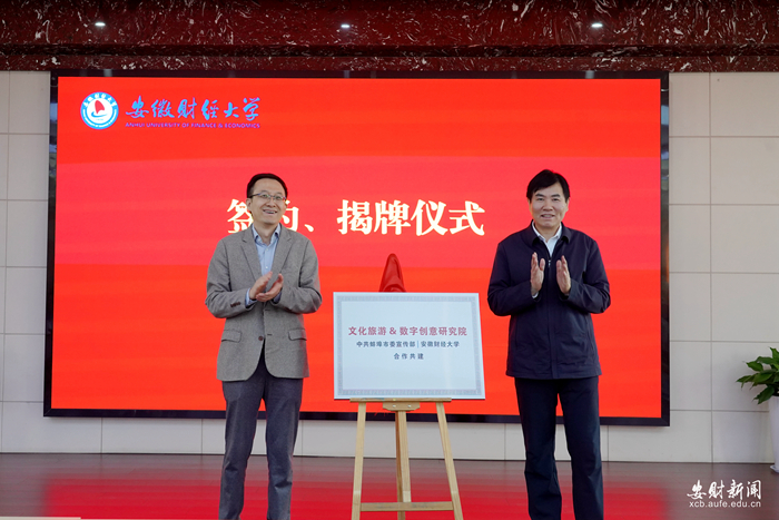 “文化旅游和数字创意研究院”和“数字创意谷”由我校与蚌埠市委宣传部共建,双方将开展产学研用、项目对接、人才培养、成果转化等方面合作。会上,双方签署合作共建文化旅游和数字创意研究院协议,禹会区长青乡人民政府与研究院就推进环涂山民宿集群和涂山文化旅游经济圈建设签署合作共建协议。大会还征求了《蚌埠市文化创意产品及旅游商品设计大赛方案(草稿)》意见,宣布第一批“文化乡村特派员”名单。我校将派出10名博士下沉蚌埠市10个特色村开展指导帮扶工作。