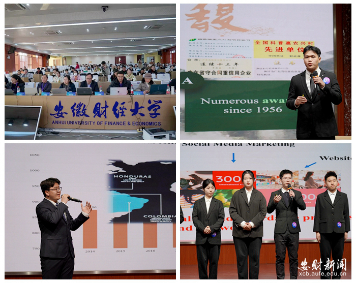 11月24日至26日,由全国大学生创新创业实践联盟、中国国际商会商业行业商会商务英语研究委员会主办,安徽财经大学承办,福建亿学教育科技集团有限公司协办的第七届“亿学杯”全国商务英语实践技能大赛本科组全国总决赛在我校举行。教育部高等学校英语专业教学指导分委员会副主任委员、中国国际商会商业行业商会商务英语研究委员会理事长严明教授,校党委书记虞宝桃,福建亿学教育科技集团有限公司董事长连敏辉,安徽省外国语言文学学会副会长周平教授出席总决赛开幕式。开幕式由文学院院长方军主持。