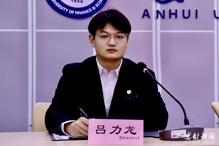 吕力龙,中共党员,金融学院2020级金融学专业本科生。曾任校学生会执行主席、青春芜湖宣传大使、党支部组织委员兼纪检委员。在校期间先后被评为“中国大学生自强之星”“安徽省大学生自强之星标兵”“安徽省社会实践先进个人”“安徽省大学生年度人物”“省心理学学会优秀志愿者”“蚌埠市优秀志愿者”等荣誉称号。现已保研至兰州大学攻读硕士研究生学位。