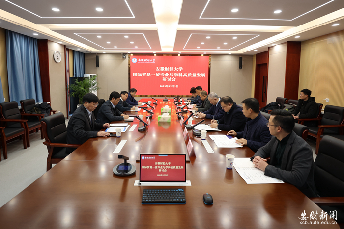发展规划处副处长罗鸣令从历史、现状和未来等方面详细介绍了学校应用经济学学科建设情况;张廷海介绍了国贸学院师资队伍、一流专业和学科建设情况。与会专家高度评价了我校在经济社会发展和国际贸易学科建设方面作出的突出贡献,一致指出,在学科建设方面,安财应坚持服务地方经济发展的宗旨,突出合作经济、徽商经济的地方特色,加强国际交流与合作,引进更多高层次人才。在一流专业建设方面,应结合“新文科”发展特点,凸显OBE教育理念,注重学科交叉与融合,强化课程体系建设与创新,引入数字贸易、跨境电商等课程。