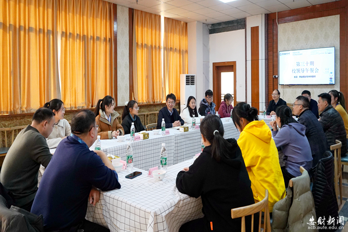 近日,第三十期校领导午餐会在龙湖东校区北苑食堂三楼举办,校党委副书记张亚新与学生代表共进午餐,党政办公室、机关党委、学生处、研究生院、校团委、后勤管理服务中心负责人陪同参加。