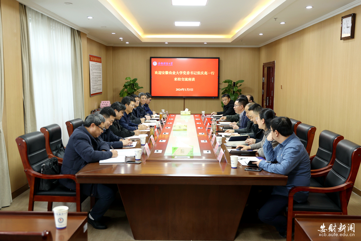 1月5日下午,安徽农业大学党委书记张庆亮,党委常委、副校长吴祥为一行来我校座谈交流。校党委副书记、校长朱红军,校党委常委、副校长储德银出席座谈会。党政办公室、党委组织部、人事处、发展规划处、科研处、财务处负责人参加座谈。座谈会由朱红军主持。