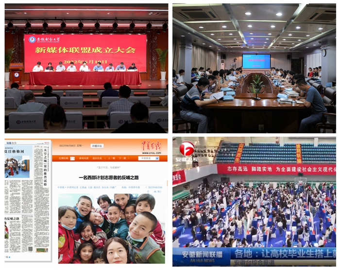学校始终牢牢把握正确舆论导向,围绕中心工作,加强对内对外宣传。成立学校新媒体联盟,充分发挥校园网、校报、微信、微博、抖音等校园媒体阵地舆论引导功能,不断强化新媒体矩阵建设,积极推进新媒体与传统媒体的融合发展,实现校园媒体有效联动、资源共享和聚合传播。第六次党代会以来,校园网主页和专题网站发布新闻4500余条、新闻图片3500余幅;编辑出版《安徽财经大学报》75期;学校官方微信公众号推送图文3826条,累计阅读量5800万;策划制作视频短片150条,全平台累计播放量2900万;制作广播节目560期,总计播音时长2万分钟。学校新媒体平台现有粉丝15万,先后获中青校媒年度影响力校园新闻奖、安徽校媒十大影响力校园媒体、十佳视觉创意校园媒体等奖项。外宣层次不断提升,学校知名度和美誉度不断提高。近年来,学校聚焦特色亮点工作,及时组织策划了一批鲜活、生动的主题报道,《光明日报》《学习时报》《中国社会科学报》《中国教育报》《中国青年报》、学习强国平台、《安徽日报》、安徽电视台、人民网、新华网等主流媒体先后宣传报道我校950余次。党史学习教育、决战脱贫攻坚、“安财新经管”建设、60周年校庆、安徽好人彭鹏、最美教师廖晓慧、最美高校辅导员宗惠、大学生自强之星吕力龙和张骞、志愿服务榜样李玉莲和张凤珍等重点工作和先进人物事迹获国家主流媒体和社会广泛关注,生动展现了学校各项事业的新进展、新成效、新经验。