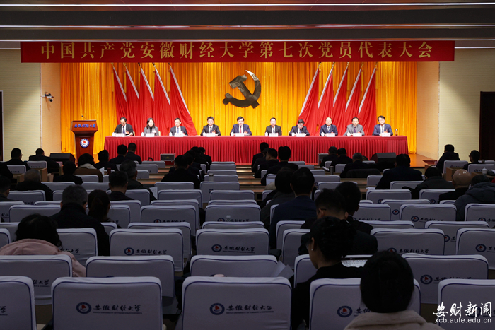 大会审议通过《中国共产党安徽财经大学第七次党员代表大会选举办法》以及总监票人、监票人名单,宣布总计票人和计票人名单。表决通过《中国共产党安徽财经大学第七次党员代表大会关于中国共产党安徽财经大学第六届委员会工作报告的决议》《中国共产党安徽财经大学第七次党员代表大会关于中国共产党安徽财经大学第六届纪律检查委员会工作报告的决议》。大会采用差额选举和无记名投票方式产生中国共产党安徽财经大学第七届委员会委员22人和中国共产党安徽财经大学第七届纪律检查委员会委员9人。当选校党委委员的为:王平、王兵、王刚贞、方鸣、朱红军、孙涛、孙小龙、李超、时大银、宋马林、张超、张斌、张亚新、武刚、赵晓明、贺佩宏、夏光兰、黄铁流、储德银、谢德刚、虞宝桃、廖信林(姓氏笔画为序);纪委委员的为:刘晓光、李刚、杨桂宇、闵向阳、武刚、徐翠平、盛先科、谢贵勇、颜晓旭(姓氏笔画为序)。