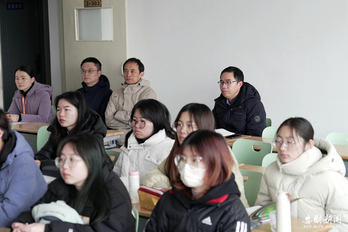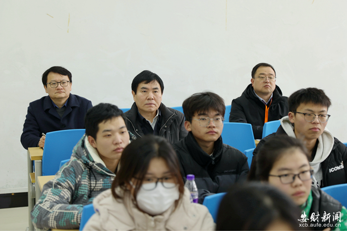 校党委副书记张亚新听取了经济学院朱道才老师讲授的《政治经济学》;学术副校长何贤杰听取了工商管理学院张莹老师讲授的《营销管理》;校党委常委、副校长宋马林听取了会计学院宗惠老师讲授的《职业生涯规划》;校党委常委、副校长储德银听取了文学院张丽丽老师讲授的《英语听说》;校党委常委、副校长赵晓明听取了体育教学部杜威老师讲授的《大学体育》。