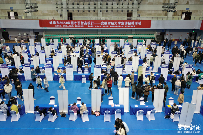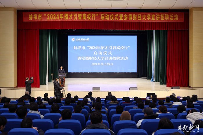 2月29日,由蚌埠市人民政府与安徽财经大学联合举办的蚌埠市“2024年招才引智高校行”启动仪式暨安徽财经大学宣讲招聘活动在我校成功举行。蚌埠市委副书记、市长马军,副市长潘君齐,市政府秘书长刘宗文,校党委书记虞宝桃,校党委常委、副校长赵晓明出席活动。部分驻蚌高校、职业院校负责同志以及企业代表、驻蚌高校毕业生代表参加活动。