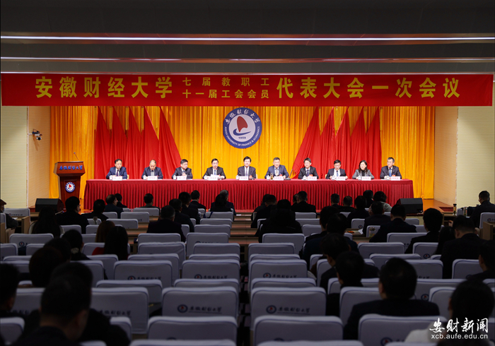 3月9日上午,安徽财经大学七届一次教代会暨十一届一次工代会在龙湖东校区求真楼一楼报告厅隆重召开。安徽省教科文卫体工会主席吴海明,校党委书记虞宝桃,党委副书记、校长朱红军,党委副书记张亚新,党委常委、纪委书记、监察专员武刚,党委常委、副校长宋马林、储德银、赵晓明、王兵出席大会。学校老领导应邀出席大会。163名正式代表以及特邀嘉宾和列席人员参加了大会。