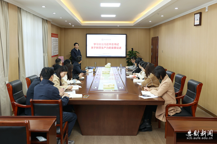 虞宝桃重点围绕新质生产力的内涵、主要特征和如何为发展新质生产力蓄势赋能三个方面进行了系统深入的解读。他指出,习近平总书记关于新质生产力的重要指示对于学校高质量发展有着深远意义。这些重要指示不仅为全面贯彻落实党的二十大精神,认真学习贯彻全国两会精神提供了行动指南,也为推动教育、科技、人才的有效贯通和融合发展指明了方向。他表示,这既是一次发展机遇,也是一次挑战。学校要在推动因地制宜发展新质生产力上贡献教育力量,调整和优化自身的学科结构、人才培养模式和服务社会的方式,深刻领会教育、科技、人才三位一体融合发展理念,不断创新人才培养模式,着力培养拔尖创新人才。虞宝桃强调,未来五年是着力构建“一体两翼”新发展格局的关键时期,学校将推深做实“安财新经管”和“走出去、建平台、上水平”两大战略,坚定走好高质量发展之路,以更大的决心、更强的担当、更实的举措来推动各项工作的落实。他希望党政办公室的同志们要进一步增强服务意识,提升决策参谋水平,加强统筹协调,推动工作落实,提高工作水平,切实发挥好“枢纽、参谋、助手、窗口”的作用。