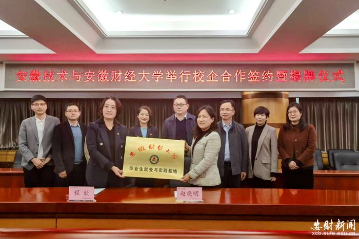 调研企业负责人对赵晓明一行到访表示欢迎,对我校的人才培养质量给予了高度评价,表示将积极与学校开展合作,共同探索人才培养新模式。校企双方就人才培养、课程建设、实习就业、项目合作等方面进行了深入交流。在安徽省技术进出口股份有限公司,校企双方签署了战略合作协议并为毕业生就业与实践基地揭牌。