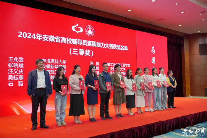 5月9日至11日,由安徽省委教育工委、安徽省教育厅主办,教育部高校思想政治工作队伍培训研修中心(安徽师范大学)承办的“2024年安徽省高校辅导员素质能力大赛”在安徽师范大学举行。本届赛事共有来自全省各高校的144名辅导员参加,比赛包含基础知识测试、案例研讨,谈心谈话三个环节。我校金融学院辅导员常斯维以扎实的理论基础、出色的职业能力和从容自信的现场发挥荣获三等奖。