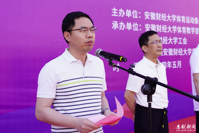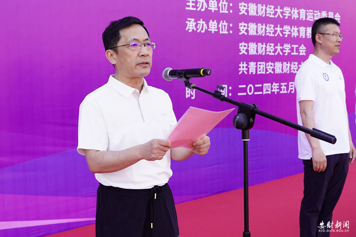 朱红军在致辞中指出,作为广受安财师生喜爱的一项体育赛事,一年一度的阳光体育长跑是对我校师生身体素质、竞技水平、精神风貌的一次全面检阅。长期以来,学校坚持把体育发展摆在重要战略地位,秉持“健康第一、以体育人”的教育理念,引导学生“走下网络、走出宿舍、走向操场”,深入推进以兴趣为导向的体育俱乐部改革,不断激发学生的体育热情,将体育精神融入人才培养全过程。他表示,本次春季长跑不仅展现了我校师生顽强拼搏精神,也对塑造健康的体魄和乐观心态,磨砺意志品质,营造全校热爱健康、崇尚体育的良好氛围具有重要意义。他希望广大师生积极投入参与校园阳光体育运动中,在奔跑中体会激情与梦想,在运动中领略青春与活力,实现竞赛中的突破与超越。