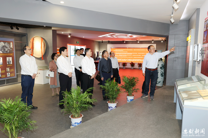 签约仪式前,铜陵学院一行参观了安徽财经大学合作经济博物馆,观看了安徽财经大学65周年校庆宣传片《逐梦向远》。