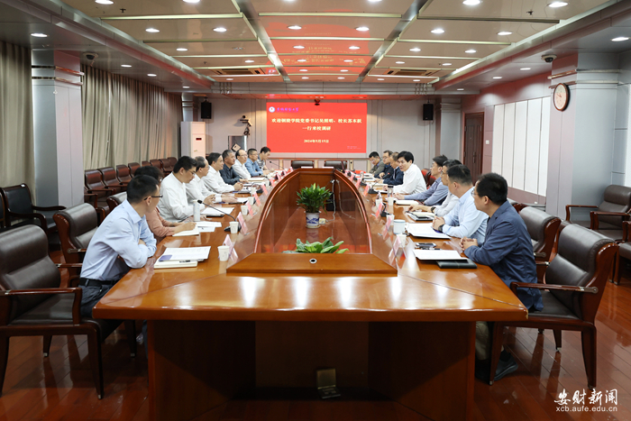 吴照明、苏本跃向安徽财经大学建校65周年表示祝贺。吴照明介绍了铜陵学院基本情况及近年来发展成就,表示铜陵学院与安财作为省内财经类高等院校,希望两校在人才培养、学科专业建设、师资队伍建设、科学研究等方面加强沟通、深化合作,共同为安徽省高等财经教育作出更大贡献。苏本跃表示铜陵学院与安财学科相近、学缘相通、人文相亲,铜陵学院正致力于建设地方应用型高水平大学,希望双方在战略合作框架协议的基础上进一步深化各领域合作,推动共同实现高质量发展。