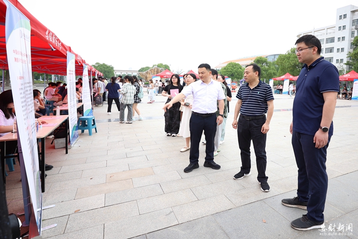 “老师好,这是我的简历,我能加入您的科研团队么?”6月5日下午,学校首届科创双选会在龙湖东校区图书馆广场举行,现场的44个科创项目吸引了全校近3000名师生的广泛参与,在校园内实现了科创项目团队负责老师与立志投身科技创新的学生之间的“双向奔赴”。校党委常委、副校长王兵与相关部门负责人共同参与了此次活动。