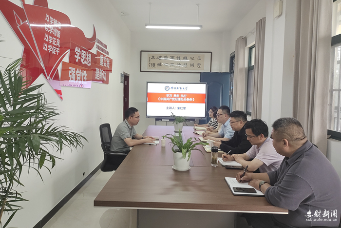 朱红军围绕“把握党纪学习教育目标要求、始终做到忠诚干净担当,学懂弄通、准确掌握《条例》的主旨要义和规定要求,知行合一、为学校事业高质量发展贡献力量”三个方面的内容,结合教育系统典型案例,详细阐述了开展党纪学习教育的重大意义、《条例》的主旨要义和规定要求,引导激励党员干部敢于担当、积极作为。他强调,要把党纪学习作为必修课、常修课,把党纪学习教育有机融入人才培养、教学科研、社会服务、对外交流合作等工作的各个方面、各个环节;要自觉学纪、知纪、明纪、守纪,守纪律、讲规矩,知敬畏、存戒惧,从严从实检身正己,把遵规守纪刻印在心,自觉内化为日用而不觉的言行准则;要始终做到忠诚干净担当,切实加强校风教风学风、师德师风建设,积极营造积极向上、干事创业、风清气正的政治生态,以及良好的学术氛围和育人环境,为推进学校事业高质量发展贡献力量。