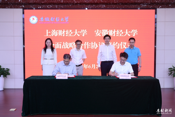 6月20日下午,我校与上海财经大学全面战略合作协议签约仪式在龙湖东校区求真楼二楼报告厅举行。上海财经大学党委副书记、校长刘元春,党委常委、副校长李增泉、刘莉亚,我校党委书记虞宝桃,党委副书记、校长朱红军,党委副书记张亚新,党委常委、纪委书记、监察专员武刚,党委常委、副校长宋马林、王兵出席。两校相关部门负责人参加活动。签约仪式由朱红军主持。