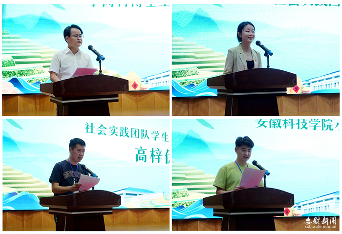 中国矿业大学张琳老师和厦门大学高梓优同学分别作为实践团队师生代表发言。小岗村博士工作站站长、安徽财经大学雷松林老师和安徽省小岗协同技术服务中心、安徽科技学院小岗现代农业研究院农业管理领域2022级研究生耿世本分别代表承办方师生代表发言。