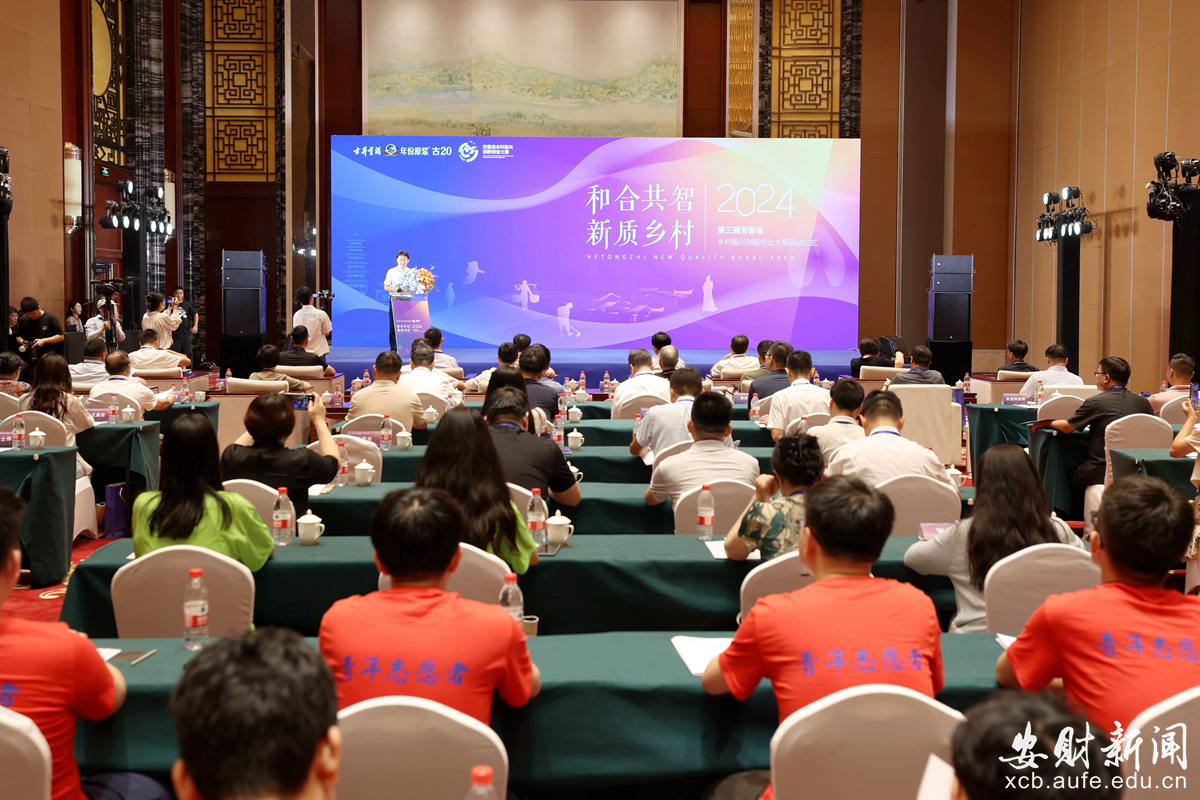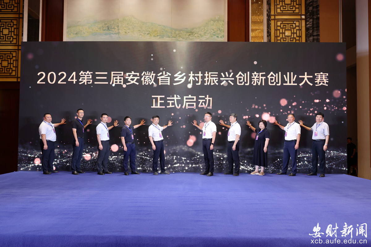 8月3日上午,第三届安徽省乡村振兴创新创业大赛启动仪式在珠城蚌埠举行。安徽省农业农村厅二级巡视员纵风云,省文化和旅游厅乡村旅游处副处长邬守阔,省人社厅事业单位人事管理处副处长方东,省商务厅市场体系建设处副处长安鑫,省农业农村厅科技处副处长娄安军,省教育厅高教处三级调研员张玉波,安徽理工大学党委常委、副校长宫能平,安徽建筑大学党委常委、副校长李早,安徽省乡村振兴促进会会长、安徽建筑大学原党委书记、校长方潜生,中国科学技术大学校长特别助理、巢湖学院原党委书记朱灿平,合肥工业大学原党委副书记陈刚,原省乡村振兴局二级巡视员、省老区建设促进会秘书长徐红,合肥市农业农村局副局长、二级调研员肖波,安徽粮食工程职业学院党委副书记、院长武杰,蚌埠市政府副秘书长刘冬,安徽财经大学党委书记虞宝桃等出席启动仪式。各高校专家学者、媒体代表、参赛代表参加启动仪式。启动仪式由安徽财经大学党委副书记张亚新主持。