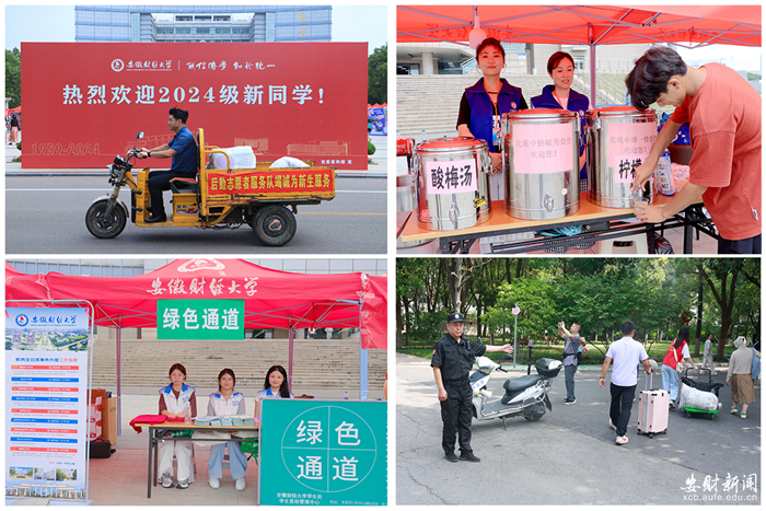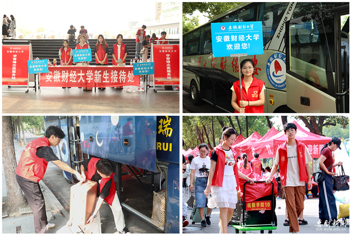 “叔叔阿姨停这边,行李交给我们就行。”“南苑3栋从这里过去就到了”......志愿者永远是一道暖心的风景线。在迎新当天,身穿红马甲的志愿者们奔走在东西校区,以热情和汗水为新生们铺就一条通畅的报到之路。在高铁站、火车站接站点,手举“安徽财经大学欢迎您”指示牌的志愿者用热情的笑容迎接每一位新同学;在新生报到处,他们忙碌地录入信息、收取资料、耐心地讲解入学手续、答疑解惑;在宿舍楼下,他们帮助新生搬运行李、熟悉校园,做新同学首批“向导”,让新生倍感亲切和温暖。龙湖东校区南苑4-5栋宿舍楼宿管员阿姨从暑假就开始筹备迎新工作,为了接待入住的本科新生,她们基本没有一刻闲下来,“看到这么多孩子从四面八方来到咱们安财,我们很高兴,也非常欢迎,再忙都是应该做的!”