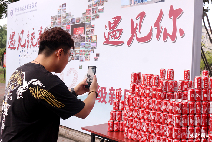 印有新生名字的专属可乐、师兄师姐亲手DIY卡套、智能车和无人机展演......迎新当天,各个学院花式宠“萌新”,将专业特色融入迎新活动,给新生们带来满满开学仪式感。
