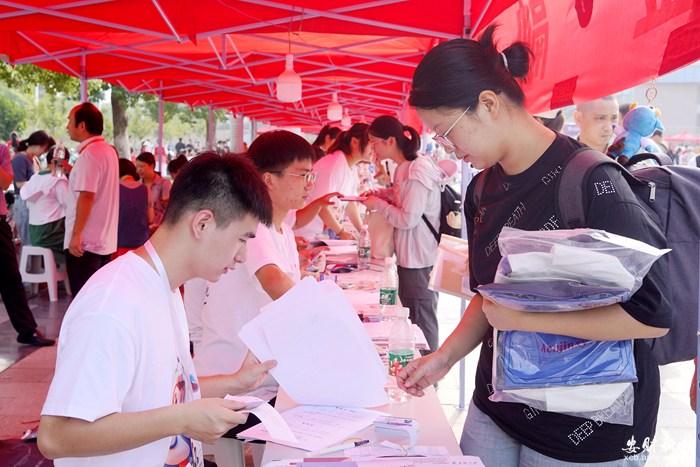 为了迎接2024级新同学,学校在火车站、高铁站设置新生接待站,安排多辆校车免费接送新生,组织两千余名学校教职工和大学生志愿者,帮助新生办理报到手续、搬运行李,帮助新生高效完成报到工作。学生处设立家庭经济困难学生“绿色通道”服务点,聘请“学生资助宣传大使”,现场提供奖助学金及助学贷款等业务咨询服务。保卫处精心制定迎新安全保卫工作方案,涵盖校园巡逻、交通疏导、应急处置、信息沟通等方面,确保迎新各项工作有序进行。后勤管理服务中心提前谋划、精心部署,高标准、严要求推进饮食、宿舍、校园环境等各项工作落实落细,全力保障校园安全稳定。在报到当天设立家长休息区,提供各式冷饮、零食,以及创伤包扎、防暑等医护服务,及时为家长和新生提供各项暖心服务。学校提前谋划、精心准备,各部门统筹联动、密切协作,以高度的责任感和贴心、暖心、热心、细心的服务,确保了迎新工作的顺利进行。