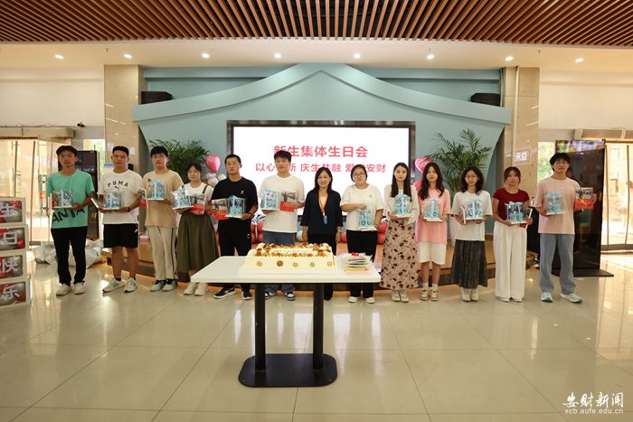 报到日当天最暖心的莫过于学校给13位新生“寿星”们过生日。8日下午4时30分,一场精心准备的新生集体生日会在龙湖东校区北苑食堂一楼拉开帷幕。校党委常委、副校长赵晓明与13位“寿星”同学们以及新生家长们欢聚一堂,共同庆祝新同学们在安财度过的第一个生日。“刚到学校第一天,学校就给我们集体过生日,感觉特别激动、特别幸福。”会计学院财管专业张博闻说,希望大家在未来四年里都能有一个愉快的大学生活,都能有满满的收获。